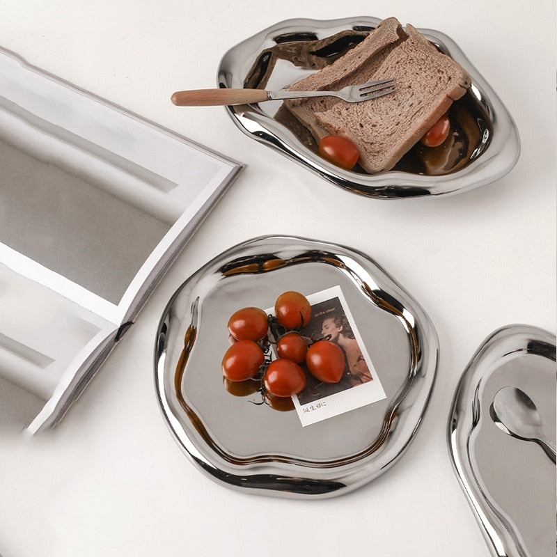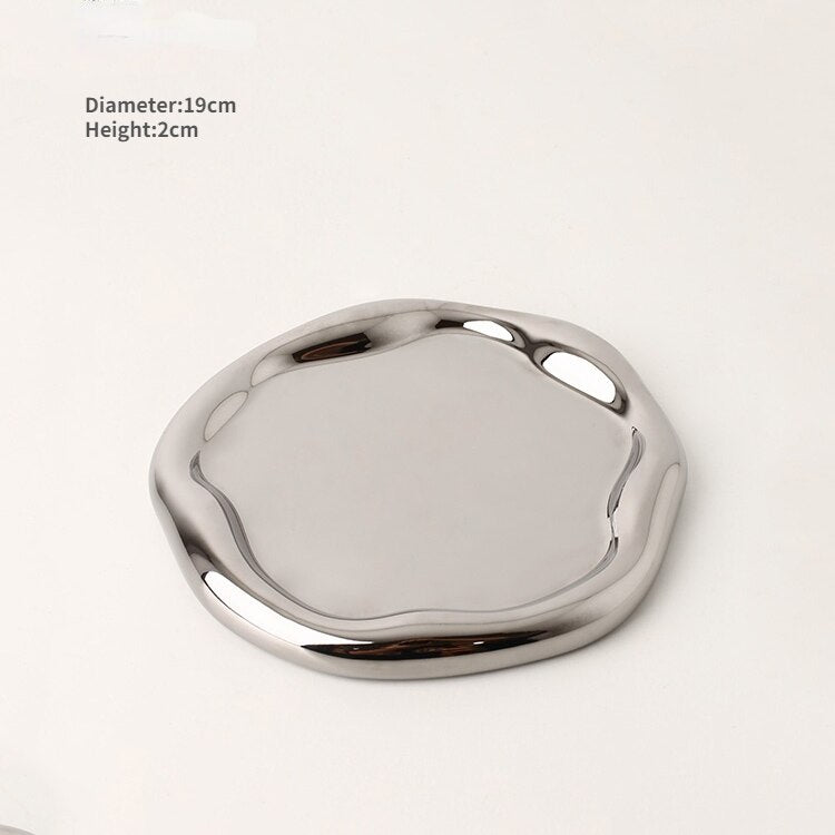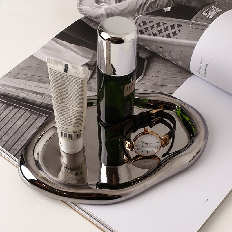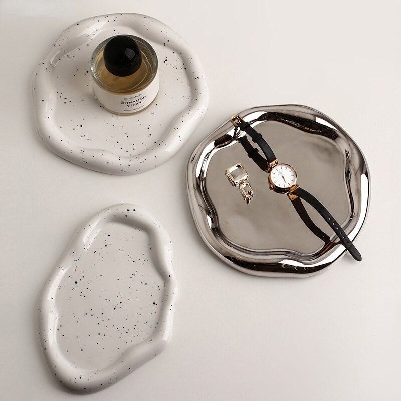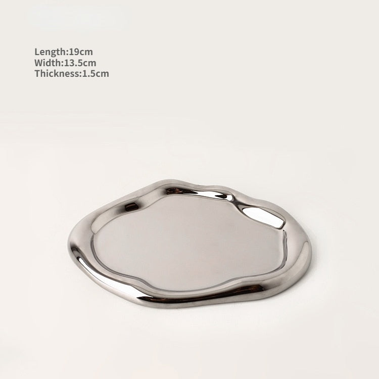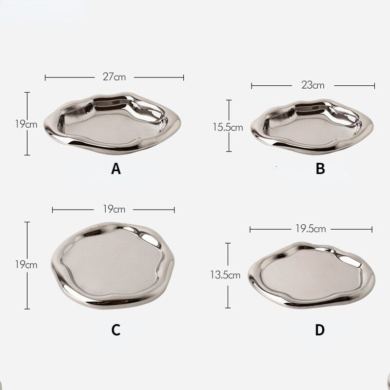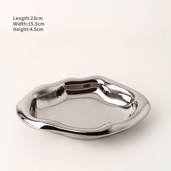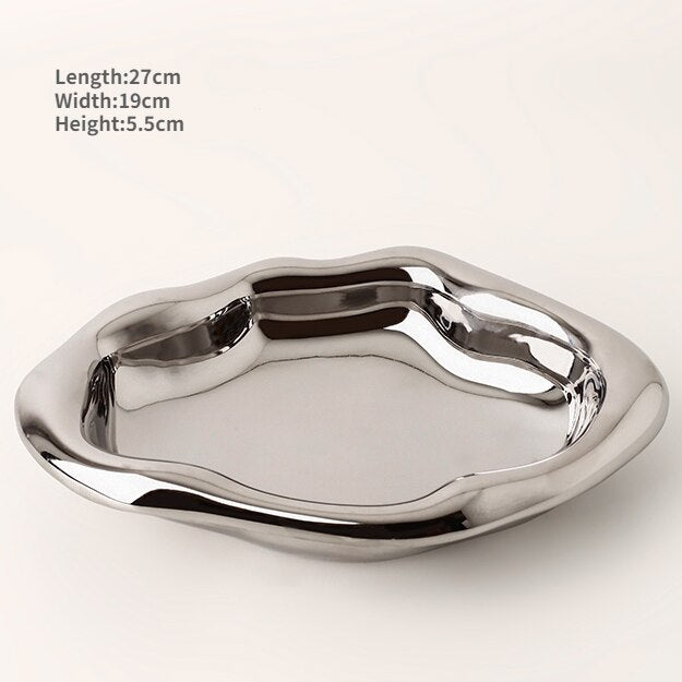 Nordic Silver plate Ceramic Dish Irregular Tray